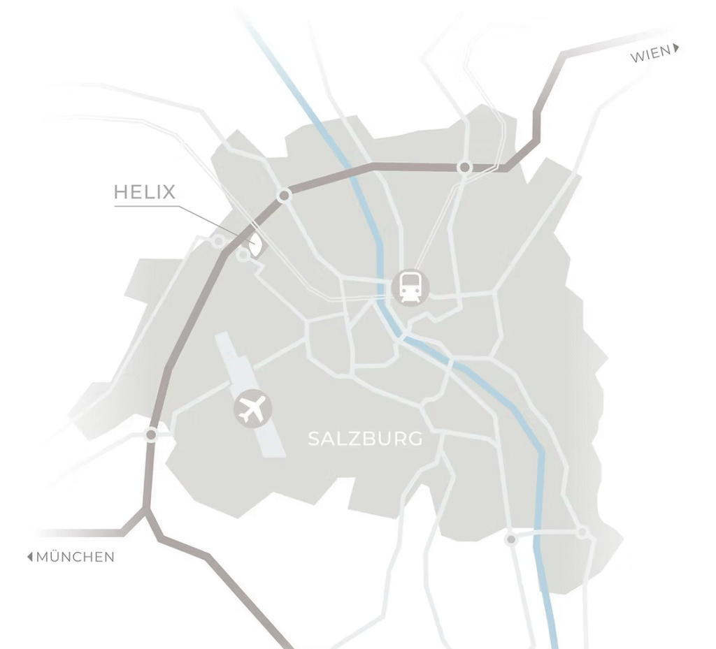 „HELIX“ ist kein klassischer Bürokomplex, sondern ein neuer Mittelpunkt für Arbeit, Leben und Begegnung in Salzburg. Die Kombination aus einzigartiger Lage, umfassender Infrastruktur und repräsentativen Flächen macht es zu einer architektonischen Landmark, die Mitarbeiter motiviert und Kunden beeindruckt. Hier entscheidest du dich nicht nur für ein Büro – du entscheidest dich für ein Umfeld, das deinem Unternehmen jeden Tag echten Mehrwert bietet.